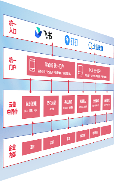 对协作平台提供支持服务,,支持企业应用与协作平台对接,,,,包含组织同步、、、消息集成、、待办集成等。。支持目前主流的协作平台:钉钉、、企微和飞书。。